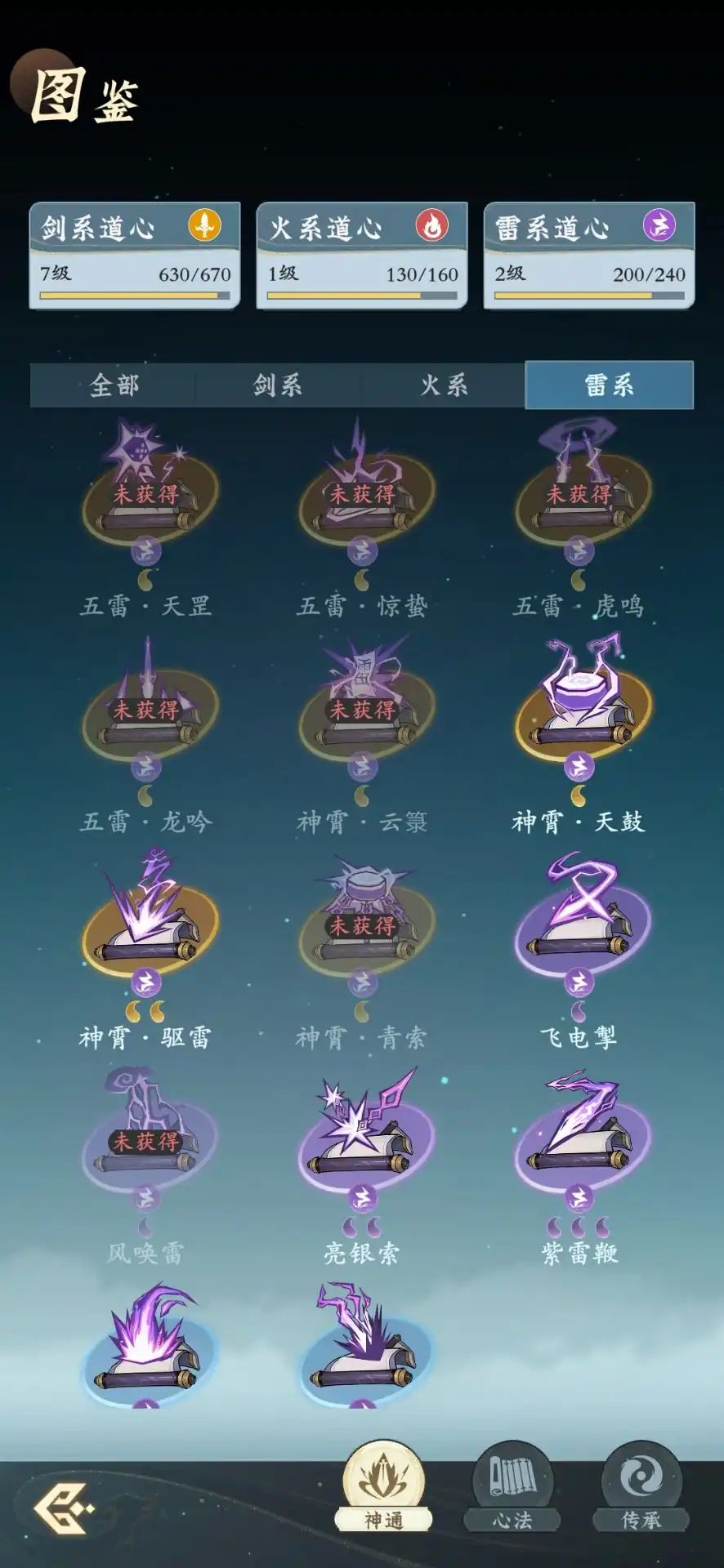 谈起雷修的技能搭配,目前游戏中雷修一共有两个流派,也就是说拥有两套不一样的技能,首先要带大家看的是第一个流派神霄流,这流派中大家需要带上四本神霄雷法,这四本雷法推荐带天鼓、驱雷、龙吟和青锁。