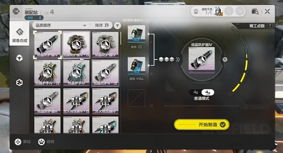3、装备:装备是一个类似御魂的系统,带上同一系列的装备会触发它的额外效果。在野外开宝箱可以获得这些装备,这些装备也可以在基建中生产。生产装备的成本比较低,因此不是特别的肝。装备有使用者的等级要求,目前最高等级限制是40级,也就是只有40级及以上的干员才能穿戴。金色装备有办法在野外获取的,必须通过基建生产。在完成一定的基建科技后会解锁一个精工模式,玩家生产装备的设备每4个小时会增加一点精工点数,可以切换成精工模式来生产一些可以精加工的T4紫色装备,精攻成功以后,会扣除一点精攻点数,可以得到金色装备。金色装备除了数值和原先的紫色装备没有任何区别,不过这个数值也是随机的,但是它的数值提升有一定的幅度。