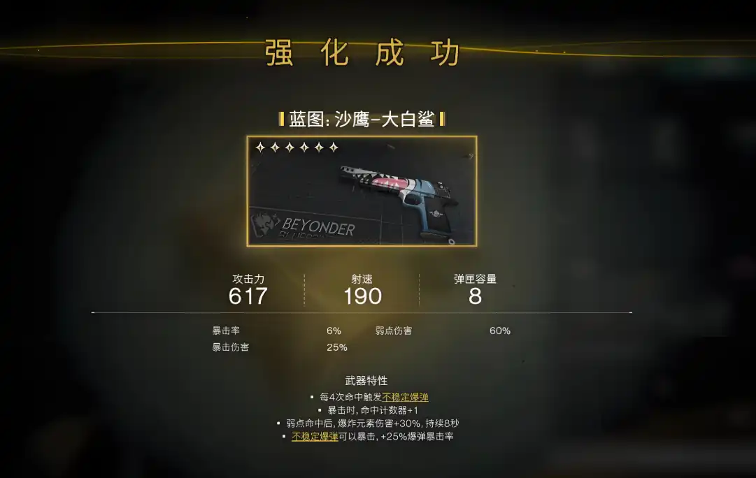 厄运宣告散弹枪,这把散弹枪有标记的特殊效果,玩家在使用厄运宣告击中敌人时,便有大概率触发标记效果,标记效果会提升自身的攻击力和暴击率。最后的勇气步枪,这把步枪的攻击和射速是步枪中最好的,其攻击效果是,击杀敌人后可以增加伤害。