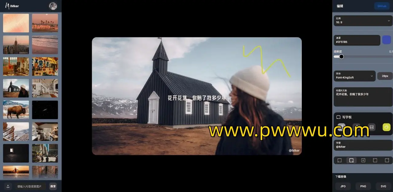 Imkaer是一款封面设计工具,专为个人博客、视频内容和公众号等提供个性化封面设计服务。通过Imkaer,用户可以根据自己的喜好和需求,轻松创建出独特的封面。该工具以其简洁的操作界面和强大的功能,让设计封面变得简单快捷。无论是文字排版、色彩选择还是图片编辑,Imkaer都能提供全面的解决方案,帮助用户打造出具有吸引力的作品封面。