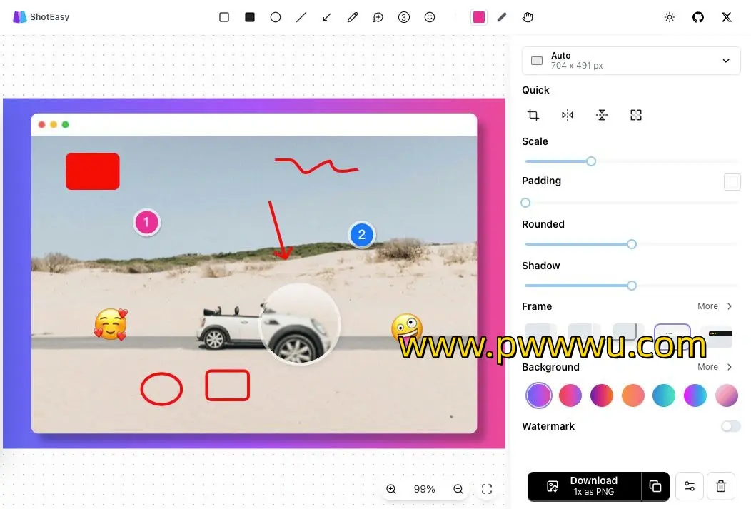 在线截图美化工具,一款功能强大的在线编辑器,让您的截图焕发新彩。该工具提供批注、裁剪、局部放大多种功能,满足您对截图的各种美化需求。更贴心的是,它还预设了各种社交媒体的尺寸,方便您直接导出高清晰度图片,轻松分享到各大平台。