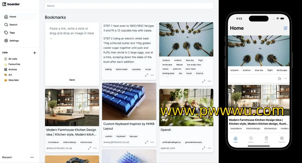 快速保存链接笔记与图像 AI自动标记检索 开源自托管数据管理工具 3小时前 趣站分享 2 快速保存链接、笔记和图像的工具,通过人工智能技术自动为用户标记内容,极大提高了检索效率。这一系统专为热衷于收集数据的人群设计,拥有开源和自托管的特点。 地址: https://hoarder.app/ https://hoarder.app/ 0 iOS安卓开源网站
