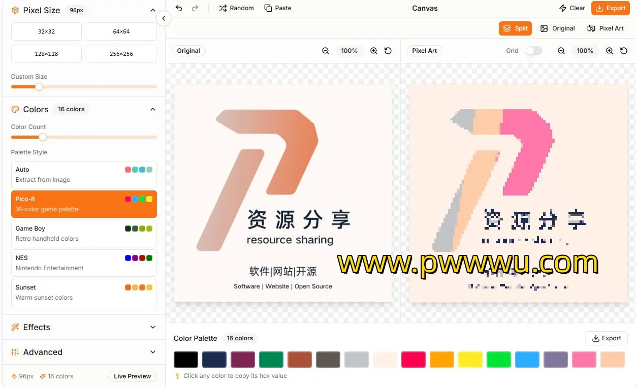 探索免费像素艺术生成器,这款便捷的在线工具能将您的图片轻松转换成具有复古魅力的像素艺术作品。使用过程极为简便,无需任何注册费用,即可享受这一免费服务。