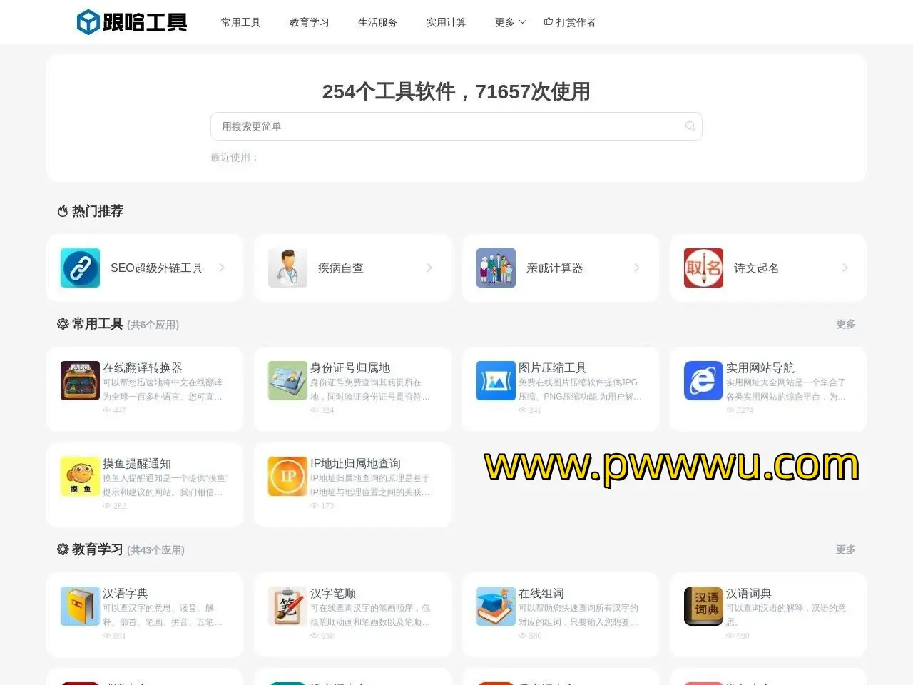 跟哈工具是一个功能丰富的免费在线工具平台,提供了一系列便捷的服务,涵盖了图片处理、实用查询、教育学习、生活服务、文本编辑和信息速查等多个领域。用户可以直接在线使用这些工具,无需进行下载或安装。