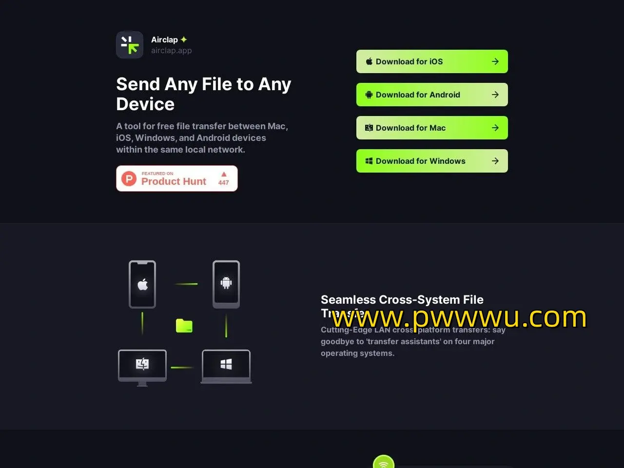 AirClap 文件传输是一个多平台兼容的文件传输工具,它使得在局域网内的Mac、iOS、Windows和Android设备之间传输文件变得免费、迅速且简单。这款工具的设计宗旨在于简化用户在不同设备间分享文件的过程,无论是在家中、办公室还是任何有网络连接的地方。