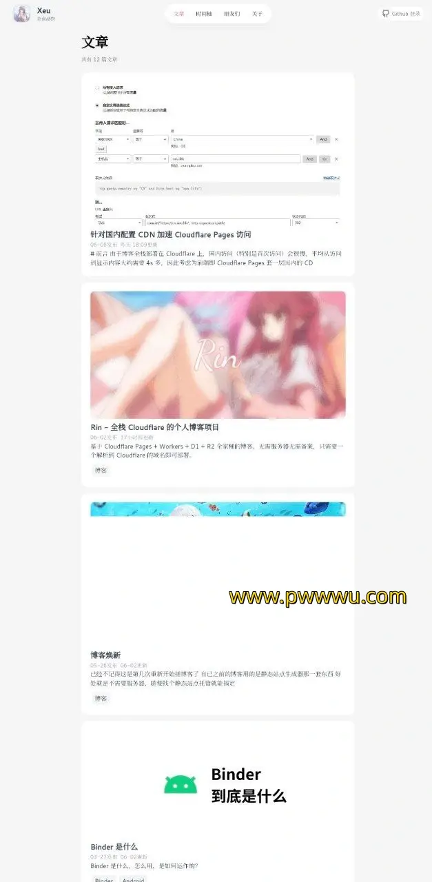 Rin 是一个集成了 Cloudflare Pages、Workers、D1 和 R2 的全面博客平台。部署此博客无需自备服务器或进行网站备案,仅需将域名解析至 Cloudflare 即可快速部署。