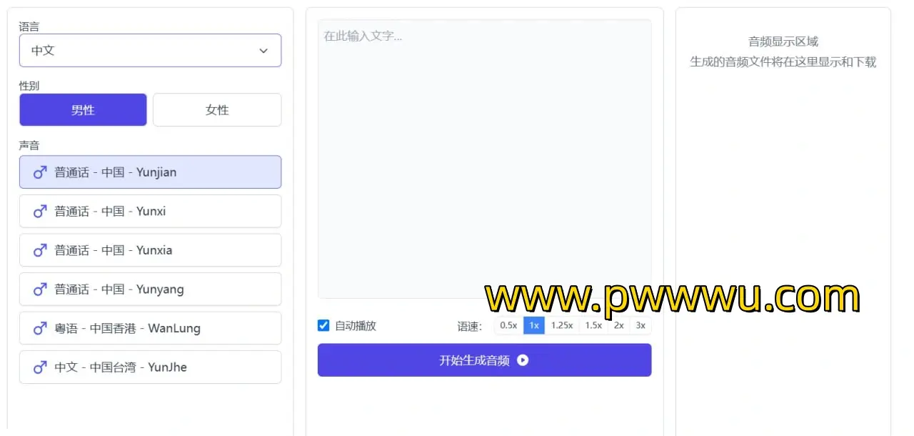 在设计上,文本转语音工具注重用户体验,界面直观易用,即使是初次接触的用户也能快速上手。它不仅支持多种语言,还能够根据用户的偏好选择不同的语音类型,如男声、女声或童声等,极大地丰富了语音合成的个性化选项。