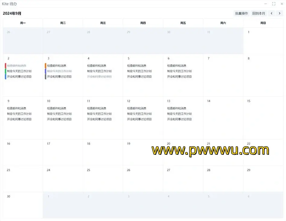 Kite 待办是专为日常任务管理设计的应用程序,它以简洁、无干扰的方式帮助用户规划每一天的工作。这款应用以其轻量和简洁的特点脱颖而出,用户无需注册即可立即上手使用,且全程无广告干扰。Kite 待办特别重视用户隐私保护,所有数据均以离线方式安全存储在用户的本地设备中。