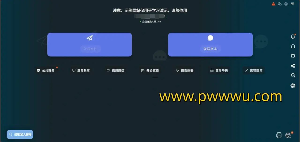 TL-RTC-File-Tool还具备直播和密码房间功能,用户可以根据需要创建私密的直播空间,分享给指定的观众。公共聊天功能则为用户提供了一个开放的交流平台,方便用户之间的信息交流和讨论。