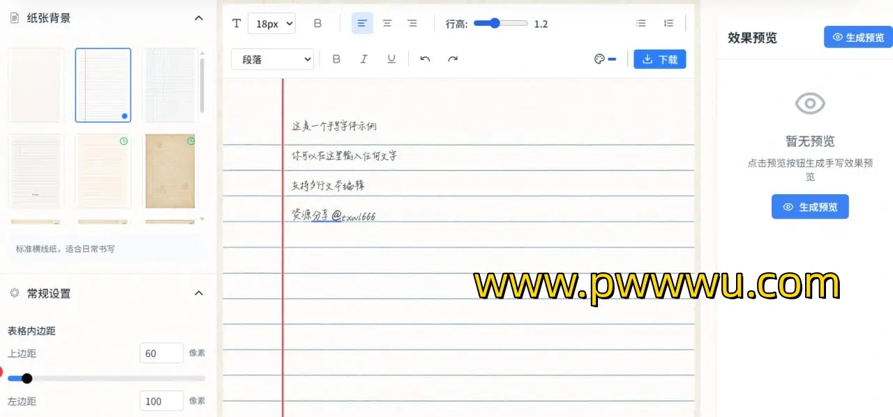 文字转手写转换器是一种在线工具,它能够将您的数字文字转化为优雅的手写笔记,适用于多种纸张背景。这款免费工具为用户提供了一个便捷的途径,将电子文本转换成具有个性化风格的手写版笔记,使得笔记既美观又具有个人特色。
