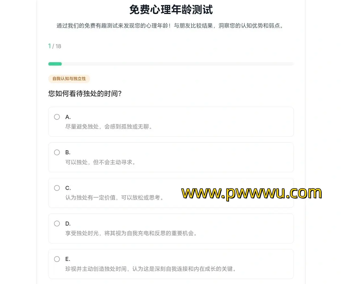 心理年龄测试是一个简单易行的过程,您只需花费几分钟的时间就能完成。它不仅为您节省了时间,还能为您提供宝贵的自我认知,这是任何想要提升自我、追求更好发展的人不可或缺的资源。立即开始您的测试,开启自我发现之旅,为自己的未来铺平道路。