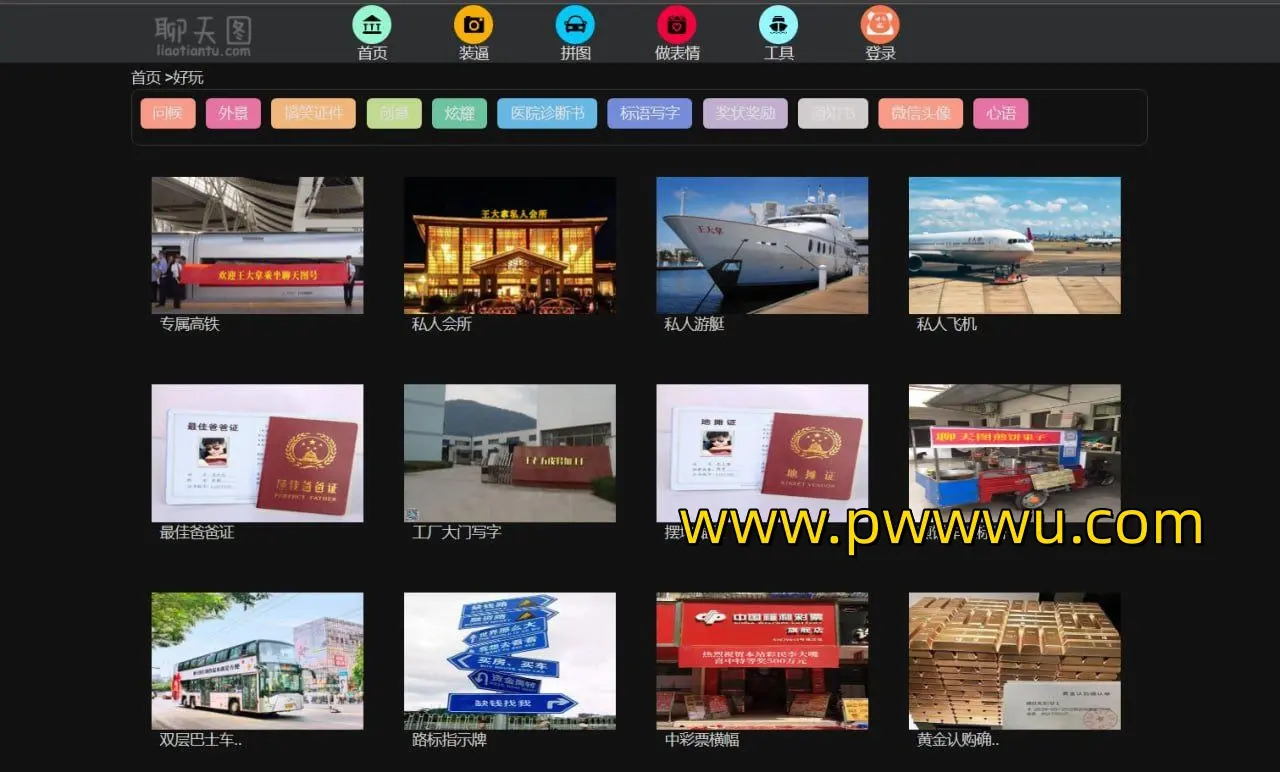 装逼神器是一款免费的在线图片编辑工具,它汇集了众多酷炫的照片和表情模板,让您能够轻松制作出独一无二的个性化照片和表情。无论是晒朋友圈,还是想要展示独特的个性,这款工具都能满足您的需求。它提供了丰富的装逼神器、举牌照片、炫富图和恶搞照片等模板,让您的社交生活更加多姿多彩。