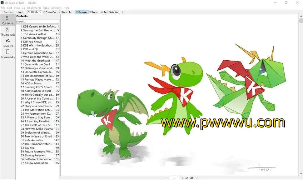 Okular是一款功能强大且免费的电脑文档阅读编辑工具,适用于Windows和Linux操作系统。它能够处理多种文档格式,包括PDF、EPub、DjVu、Markdown(MD)、TIFF、WebP、CBR、CBZ、CHM和XPS等,满足了用户对不同类型文档的阅读和编辑需求。这款软件以其出色的兼容性和易用性,为用户带来了便捷的文档处理体验。