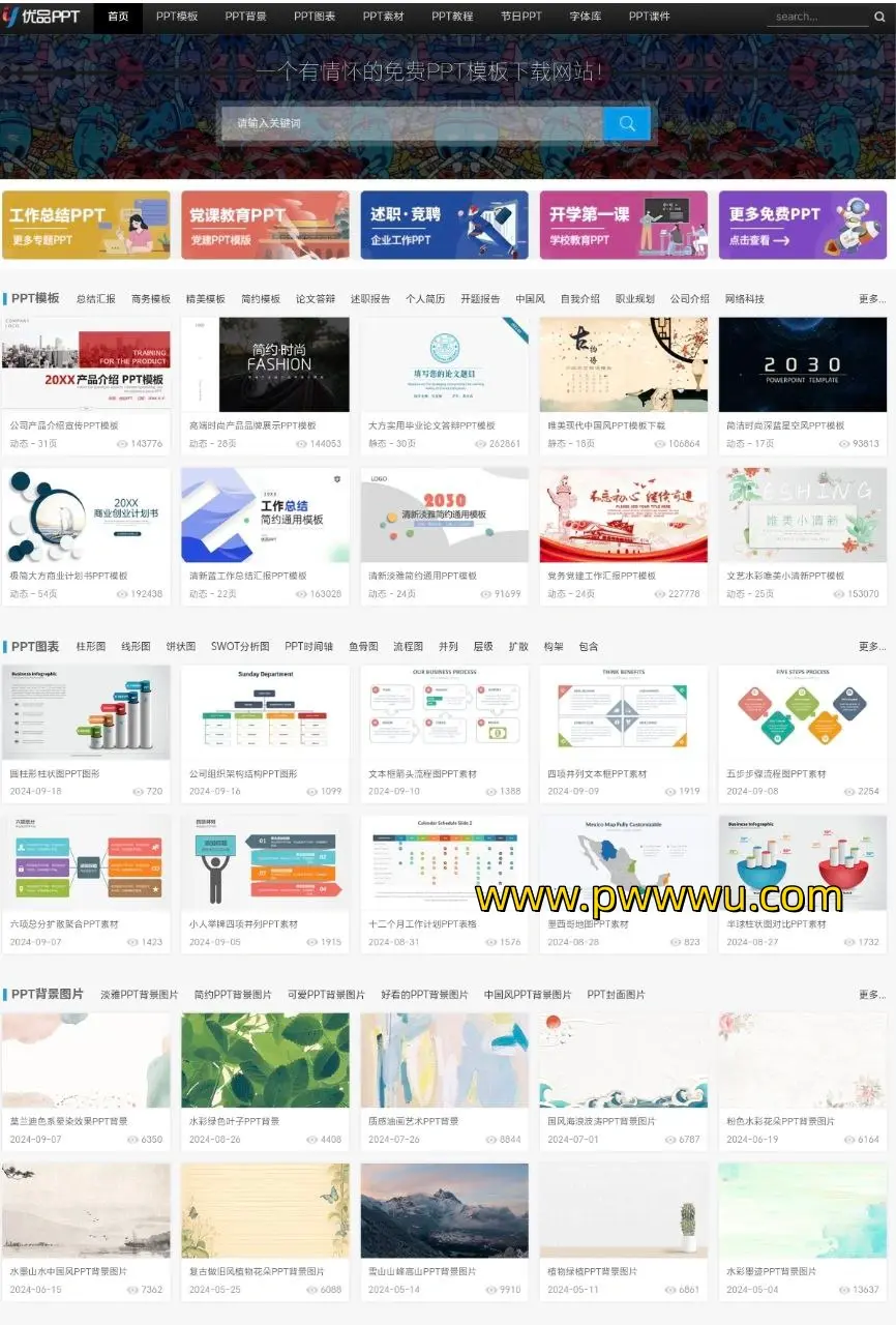 优品PPT模板网,一个致力于提供高品质免费PPT模板下载的平台。这里汇聚了各类PPT资源,包括图表、背景图片、素材以及教程,满足您在制作PPT时的各种需求。我们的目标是成为中国最大、最专业的PPT资源下载平台,为您提供一站式服务。