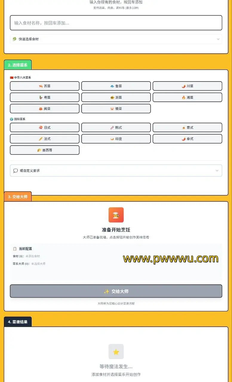 在这个平台上,无论是传统的中国菜还是异国风味,都能得到精心的指导。我们的AI系统能够根据用户的口味偏好、烹饪水平以及可用的食材,提供最合适的食谱和烹饪步骤。这不仅让烹饪变得更加简单,也确保了每道菜肴都能达到令人难忘的美味境界。