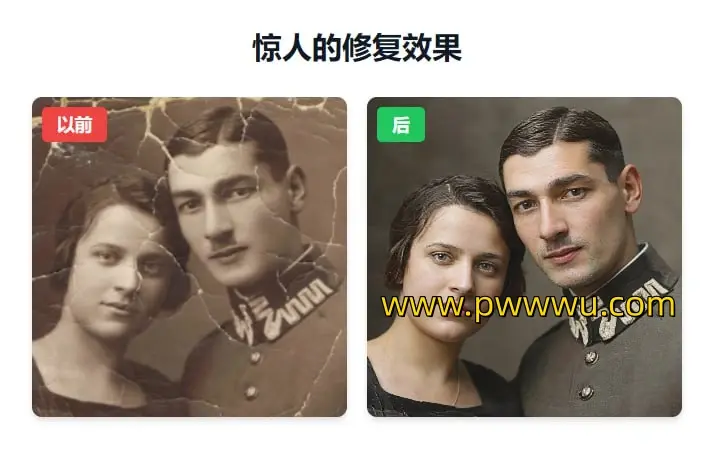 Restore Old Photos是一款便捷的在线AI照片修复工具,您无需注册即可便捷使用。依托尖端的AI技术,该工具能够强化老旧照片的清晰度,修复各种划痕和损伤,甚至为黑白照片提供精准的色彩还原,让您珍贵的记忆焕发新生命。