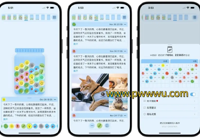 CandyDiary是一款倾注情感的日记应用,它的设计灵感源自童年时期用纸张折成小星星,并将它们珍藏在玻璃瓶中的美好回忆。现在,你可以将你的心情、所见所闻以及生活中的点滴小事,以图片和文字的形式记录下来,像糖果一样收集到你的个人瓶中。