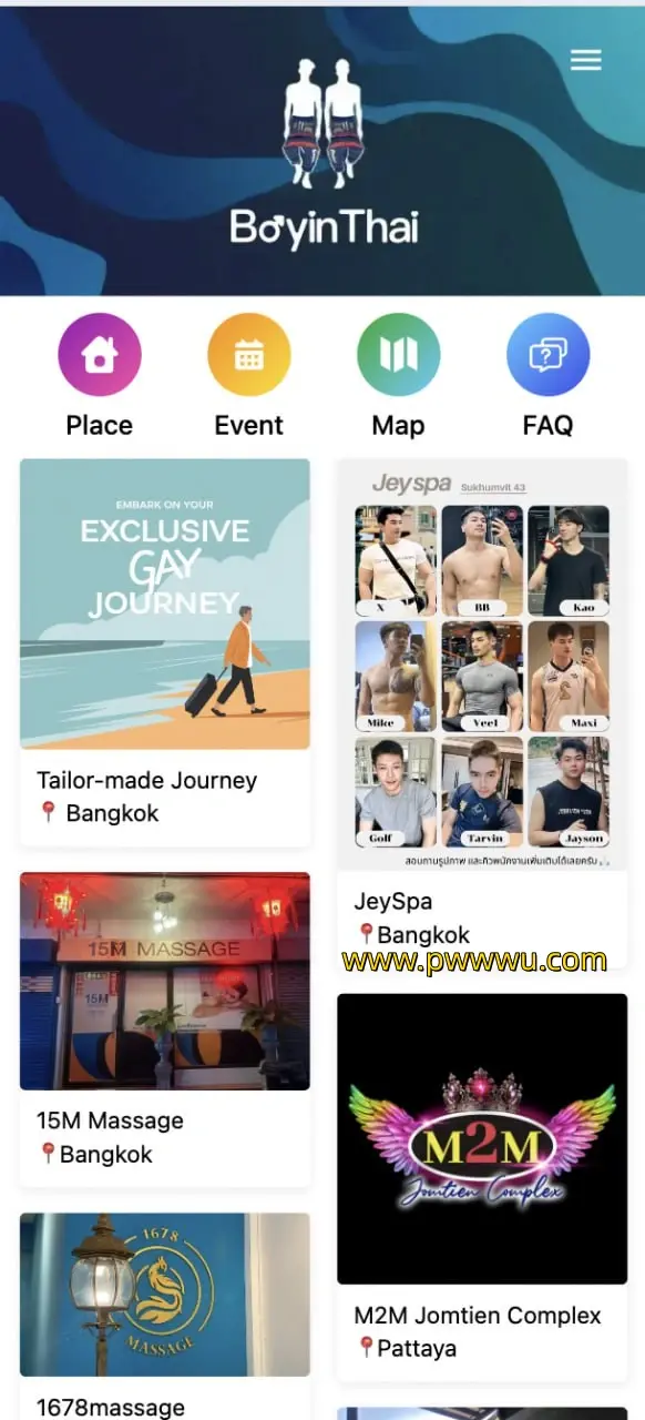 探索泰国的精彩同志之旅,2024年版,专为同志社群打造。本指南精心收录曼谷、清迈、芭堤雅等地同志友好的Spa、酒吧、桑拿及其他休闲场所,提供详尽信息和实用地图定位服务,是您长假或周末短途的理想旅伴。