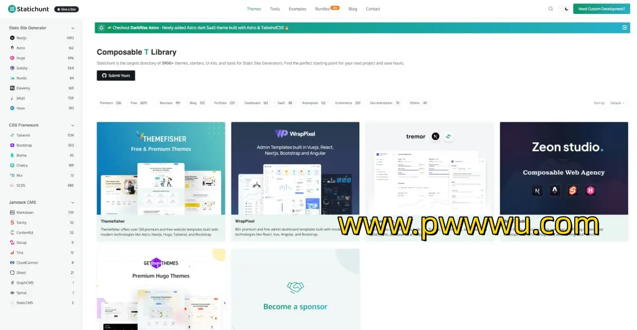 Statichunt的丰富资源库让开发者能够快速启动项目,无论是构建个人网站、企业网站还是在线商店,都能在这里找到合适的模板。这些模板和工具不仅易于使用,还具有高度的可定制性,让开发者能够根据自己的需求进行调整和优化。
