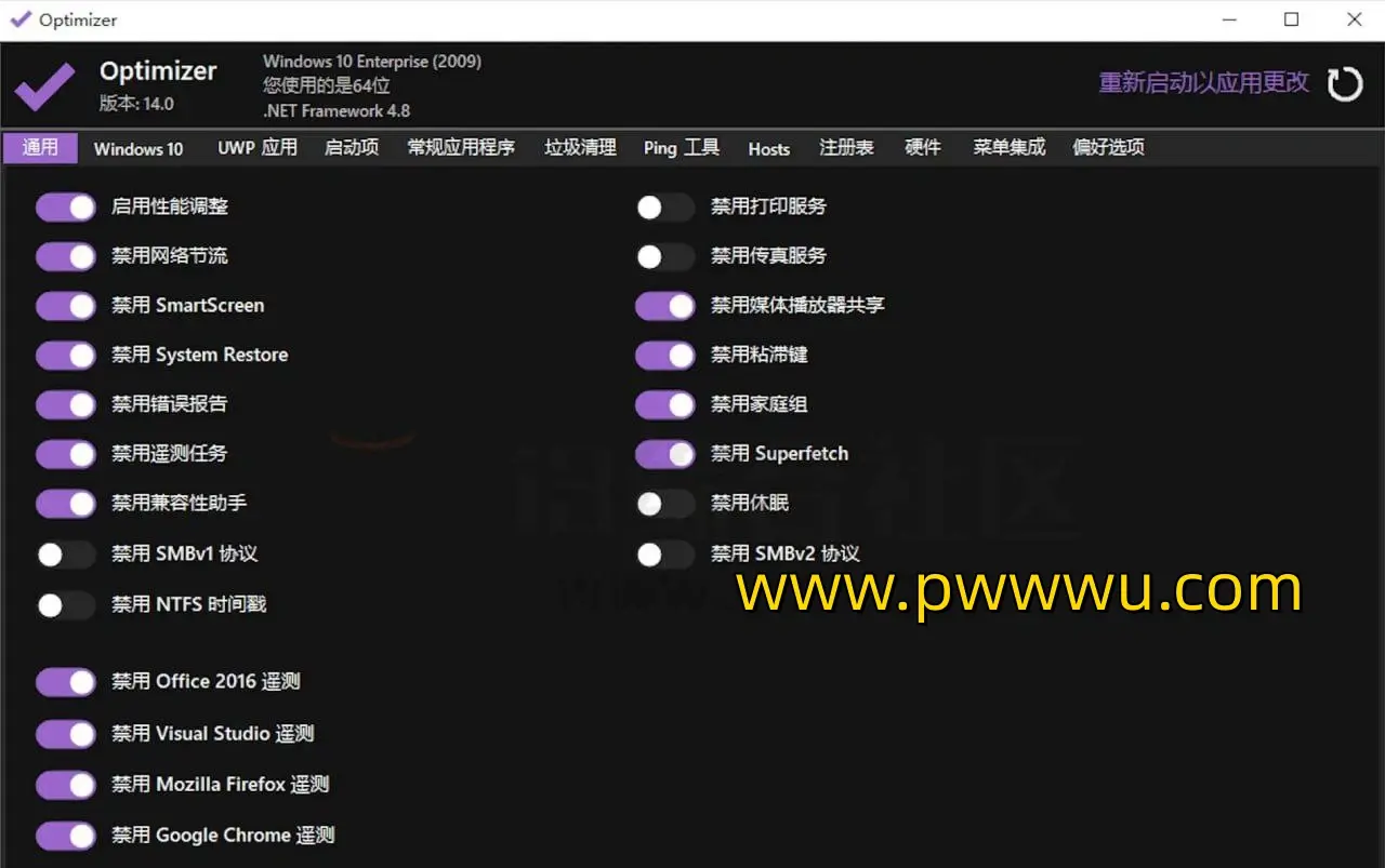 通过这些细致的调整,Optimizer显著提升了Windows系统的使用体验和性能。用户可以更加专注于他们的工作和娱乐,而无需担心系统运行缓慢或出现不必要的中断。Optimizer以其直观的用户界面和强大的功能,成为了Windows优化领域的佼佼者。