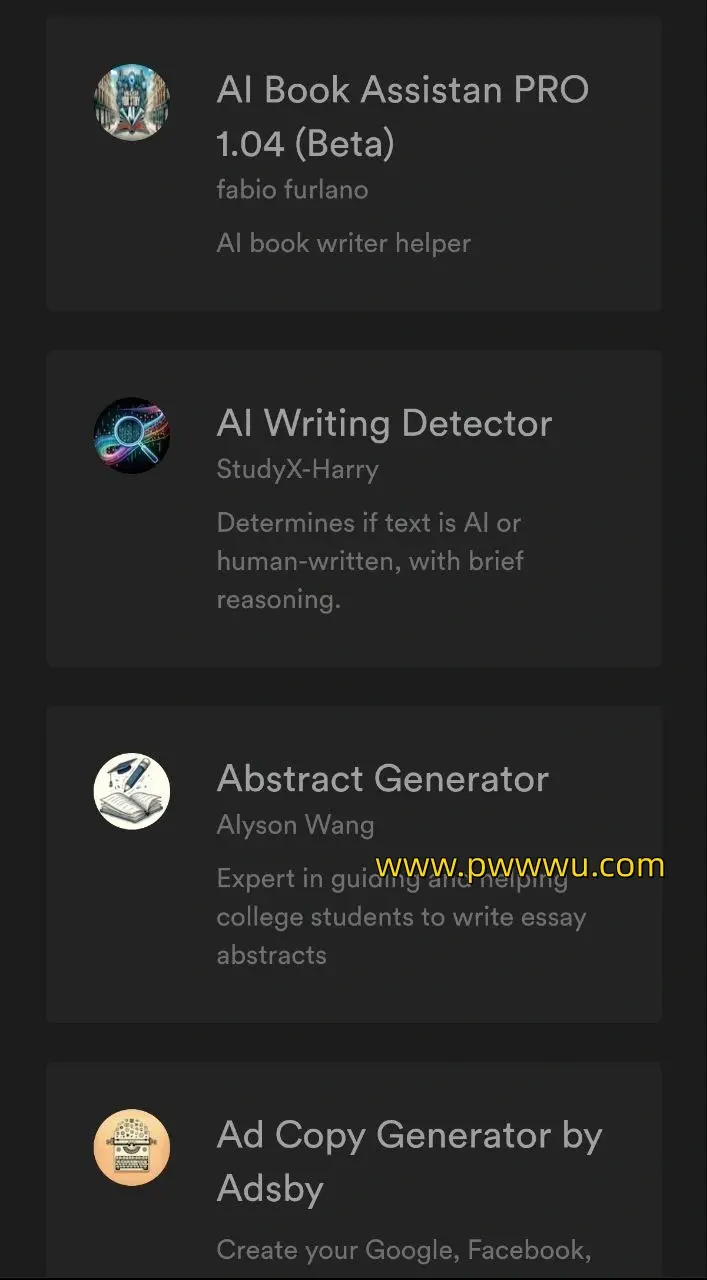 我们涵盖了各种类型的GPT应用,从AI辅助图书创作到内容和SEO优化,再到约会资料生成和学术论文撰写,甚至节日相关的辅助工具,应有尽有。在这里,您可以找到满足各种需求的完美GPT解决方案。