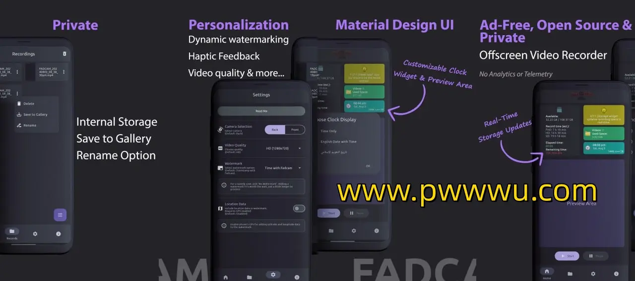 FadCam是一款致力于保护隐私的安卓应用,专为保障个人安全和记录重要事件而设计。该应用能够在手机屏幕关闭状态下进行视频录制,提供SD、HD、FHD等多种分辨率选项,满足不同场景下的录制需求。FadCam的用户界面遵循Material Design设计原则,保证了界面的现代感和操作的便捷性,使得用户能够轻松上手。