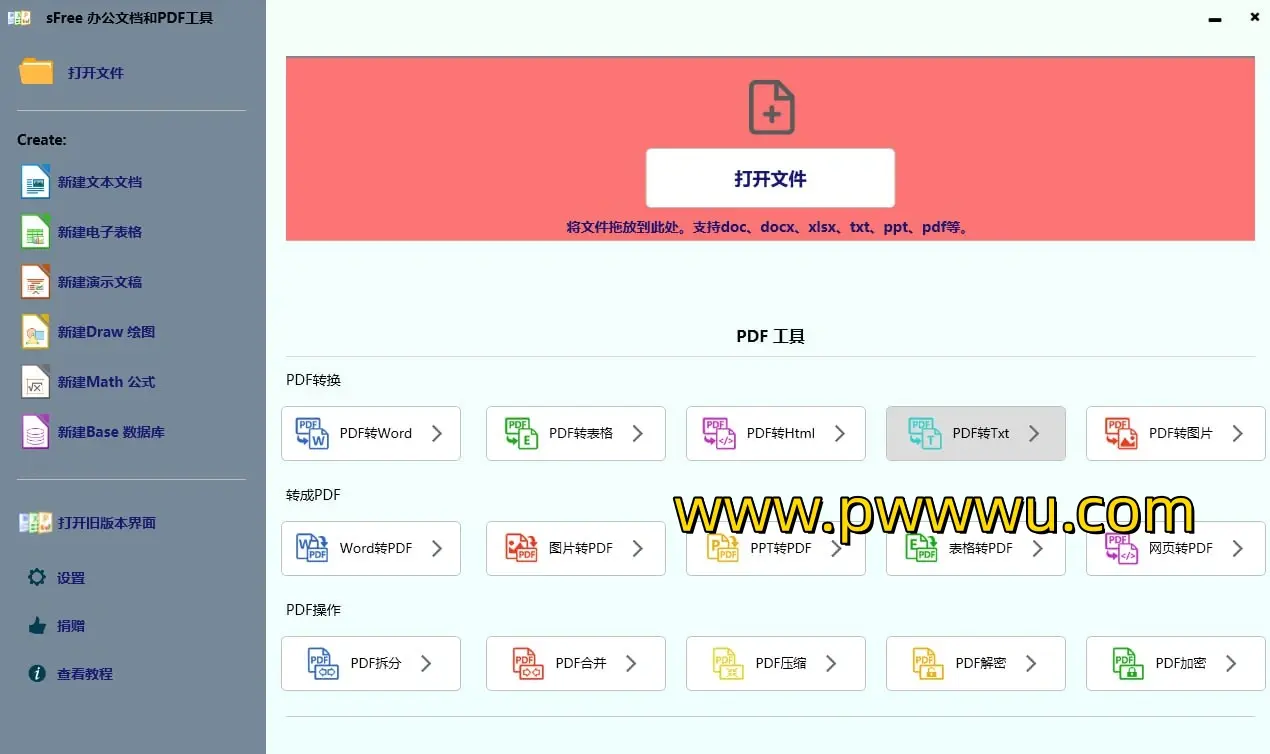 sFree Office是一款在GPL许可证下基于LibreOffice定制的办公软件和PDF工具,它具备强大的文件格式兼容性,包括但不限于doc、docx、txt、xlsx、xls、ppt、pptx、pdf、rtf和xml等。这款软件能够轻松打开和编辑文本文档、电子表格、演示文稿、图纸以及公式编辑器等多种类型的文件。