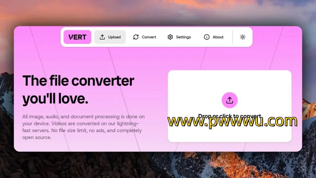VERT.sh 是一款卓越的在线文件转换工具,它提供了一个全方位的解决方案,允许用户在本地设备上转换图像、音频和文档格式。这一工具利用 WebAssembly 技术,确保了文件转换过程无需上传至服务器,从而保护了用户的隐私安全,避免了广告和追踪的烦恼。VERT.sh 支持广泛的文件格式,包括但不限于 PNG、JPEG、WEBP、FLAC、MP3、DOCX、Markdown、CSV 和 EPUB,且对文件大小没有任何限制。