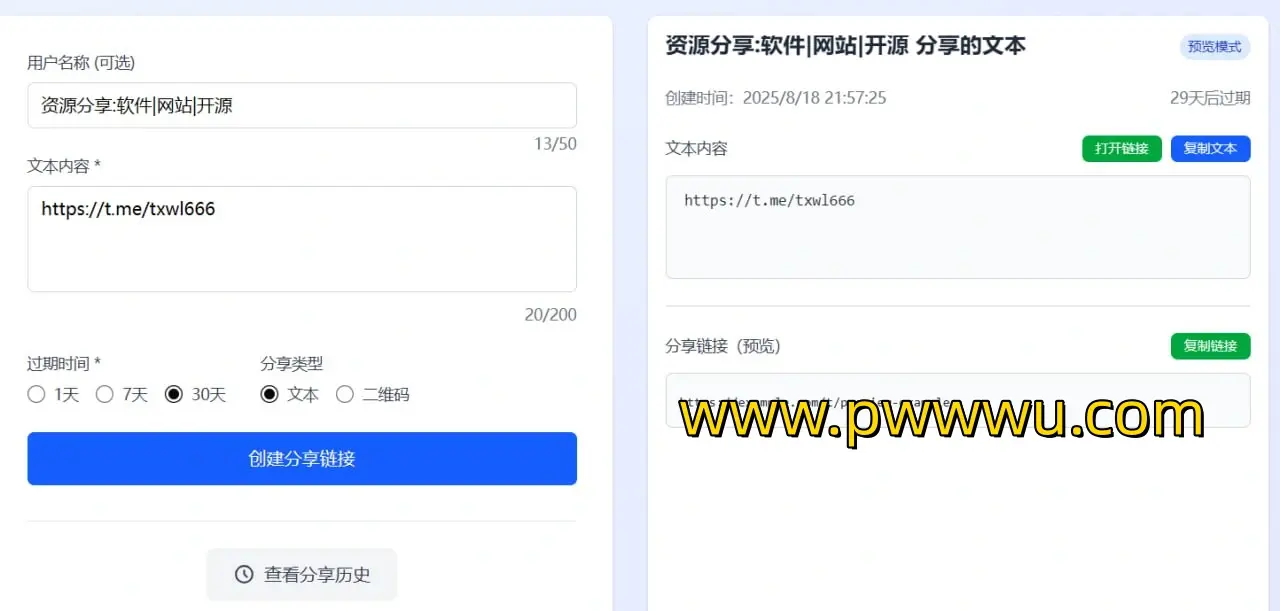 3. 二维码支持:为了进一步简化移动设备的分享流程,TextSharing平台提供了二维码生成功能。用户可以直接生成二维码,通过扫码即可访问和分享内容,极大地提升了分享的便捷性。