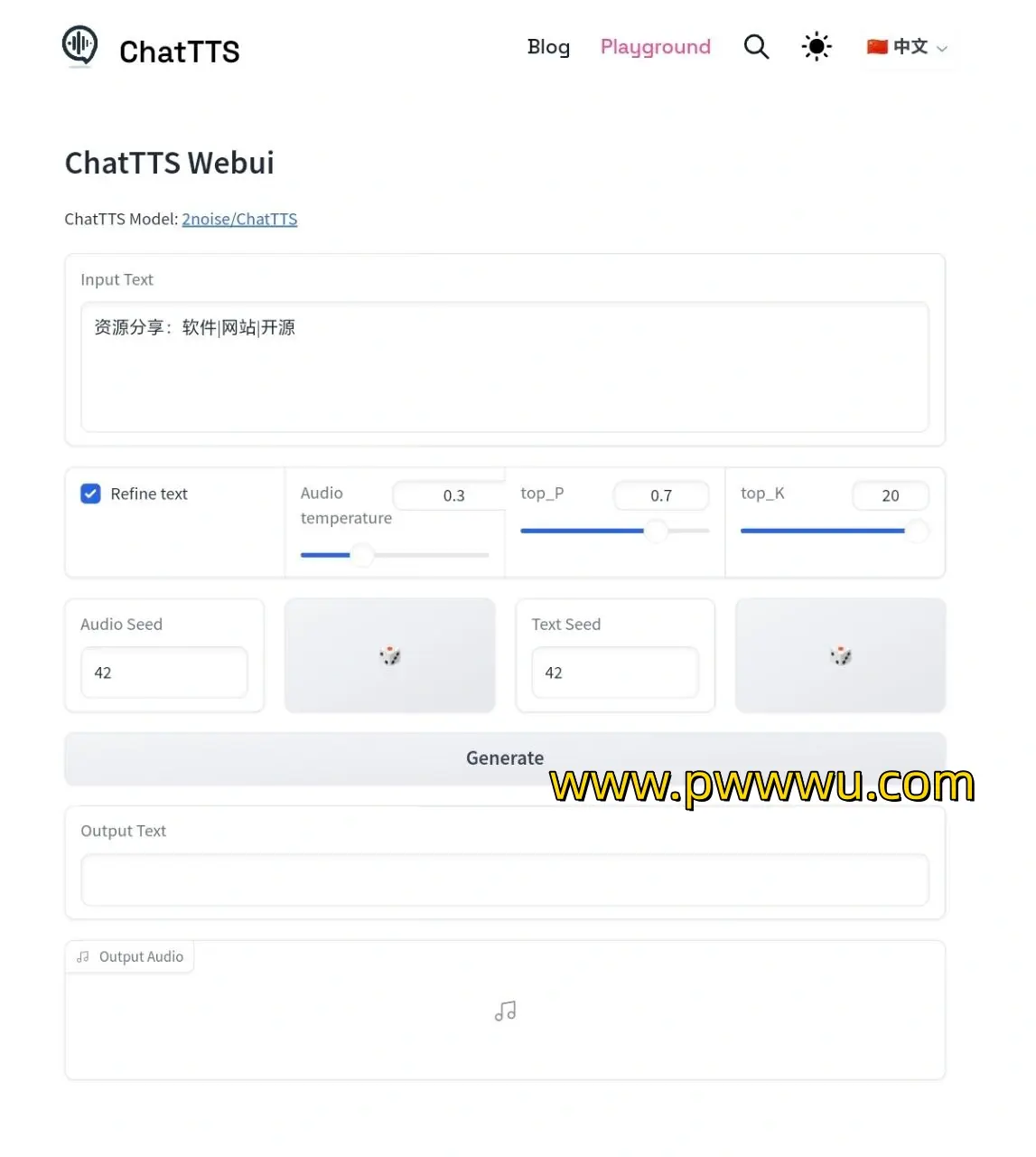ChatTTS的操作流程十分简洁,让您在短时间内即可掌握。只需几步,您便能体验到高质量的语音合成。在试用场中,您可以输入任何文本,并根据个人偏好调整设置,以获得最佳的语音效果。完成后,您只需一键生成语音文件,并将其下载到您的设备上,即可随时享受自然流畅的语音体验。
