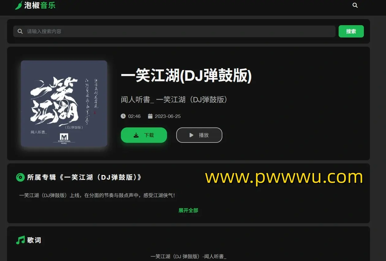 泡椒音乐是一个专注于提供高品质音乐体验的在线平台。我们致力于为用户提供MP3、FLAC、WAV等无损音质的音乐在线播放和免费下载服务。无论是最新的流行音乐还是经典的老歌,您都能在我们的平台上找到。
