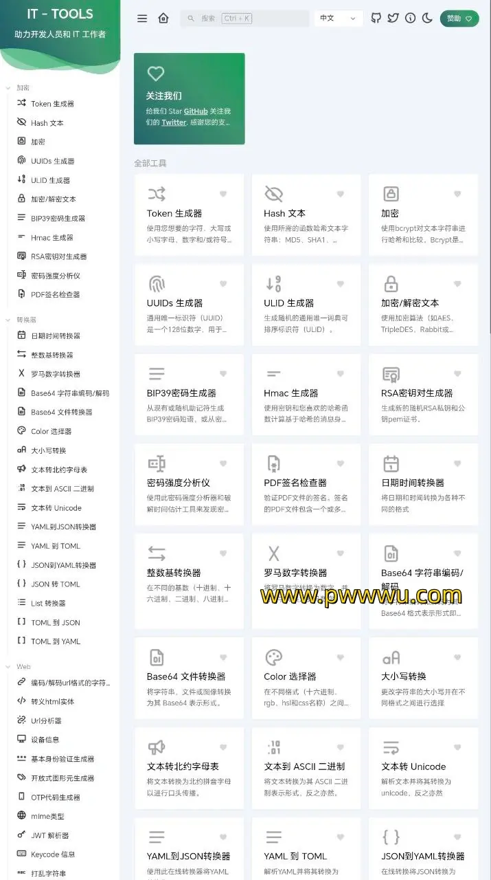 这些工具均采用纯前端技术开发,用户无需担心后端处理或数据安全问题。IT Tools的界面简洁直观,用户可以轻松访问和使用各种工具。由于其开源特性,IT Tools也欢迎社区成员贡献代码,共同促进平台的发展和完善。