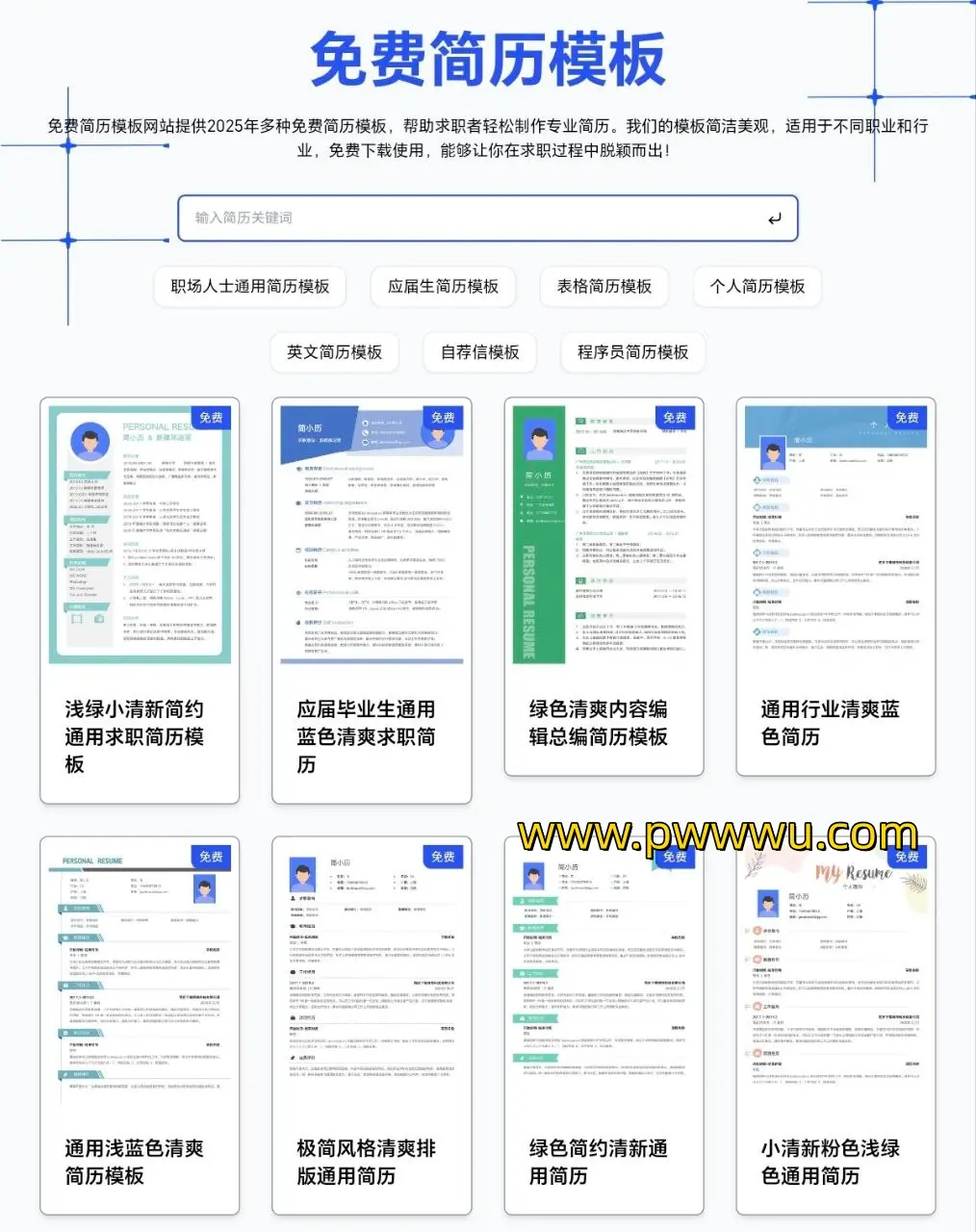我们精心准备了专为2025年求职季量身定做的免费简历模板。这些模板将助您打造一份既专业又个性化的简历,轻松应对各类职位。设计上,我们注重简洁与美观,确保模板不仅符合行业标准,而且能够展现您的专业气质。无论您想应聘哪个行业或职位,这些模板都能满足您的需求。最重要的是,所有模板均可免费下载并快速创建一份突出您竞争优势的简历,让您在众多求职者中崭露头角。