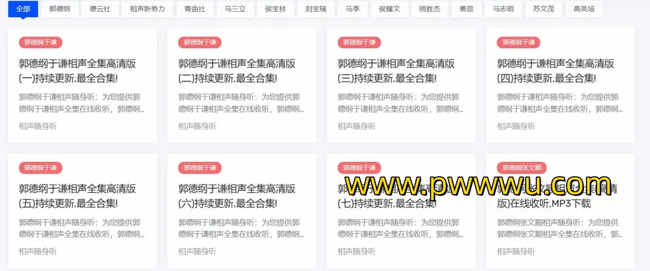 相声随身听,一个让相声爱好者无需注册即可享受相声艺术的平台。在这里,您可以在网页上轻松收听经典与热门相声段子,并可将它们下载为MP3格式,以便离线时也能享受这份乐趣。我们的平台汇聚了丰富的相声资源,不仅包括现代相声界的佼佼者如德云社、郭德纲、于谦、岳云鹏等,还有传统相声大师马三立、侯宝林、刘宝瑞、师胜杰、姜昆等人的经典之作。我们也精心收录了新派相声团体如青曲社的精彩表演,满足不同口味的相声爱好者。