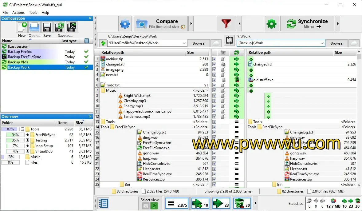 FreeFileSync的用户界面简洁直观,即使是初次使用的用户也能快速上手。软件提供了多种同步选项,包括单向同步、双向同步以及镜像同步等,满足不同用户的需求。