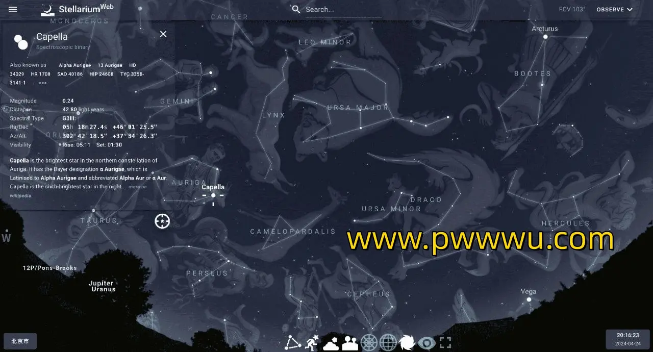 Stellarium是一个开源的天象模拟软件,深受天文爱好者的青睐。它能够以极高的精度模拟并展示夜空中各种天体,如恒星、星座、行星和彗星。用户可以根据自己的需求,选择不同的时间和地点,进行放大观察,并获取星座的图解信息。Stellarium还提供了跨平台的支持,包括Windows、Linux、macOS、iOS以及Android等多个操作系统,确保用户无论使用何种设备都能享受到星空的壮丽景象。