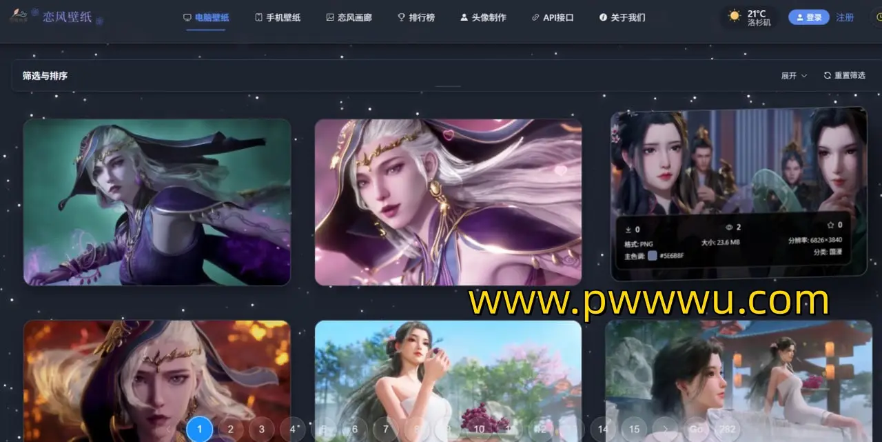 恋风壁纸网站的内容丰富多彩,包括动漫、风景、游戏、自然、极简和抽象等多种风格,无论是追求流行趋势还是寻找个性化壁纸,都能在这里找到满意的选择。网站还设有热门排行榜和定期更新,确保用户能够接触到最新、最热的壁纸资源。