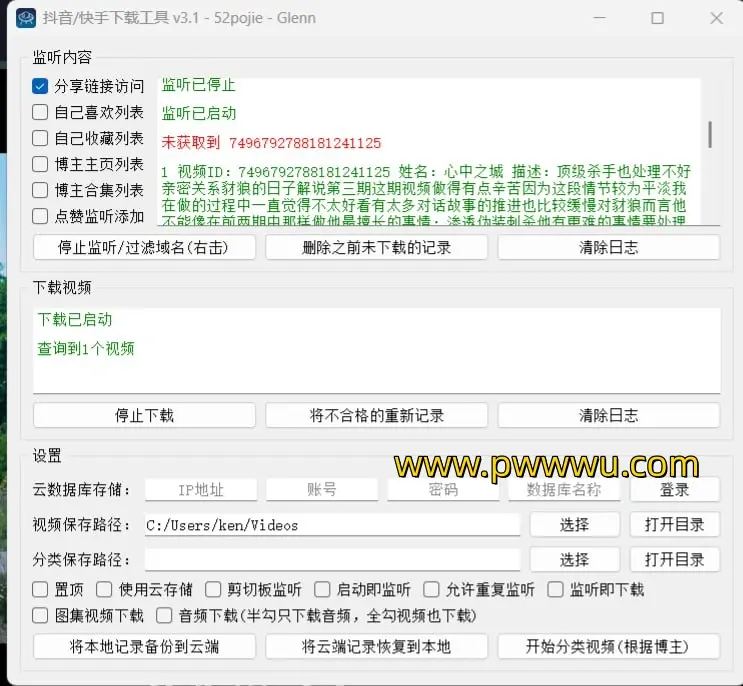 使用该工具,用户可以按照博主进行视频分类,让内容组织更加有序。同时,丰富的自定义设置选项让用户能够根据自己的需求调整保存路径、下载类型以及监听开关等参数。这款下载工具以其强大的功能和用户友好的操作界面,成为抖音和快手用户不可或缺的助手。