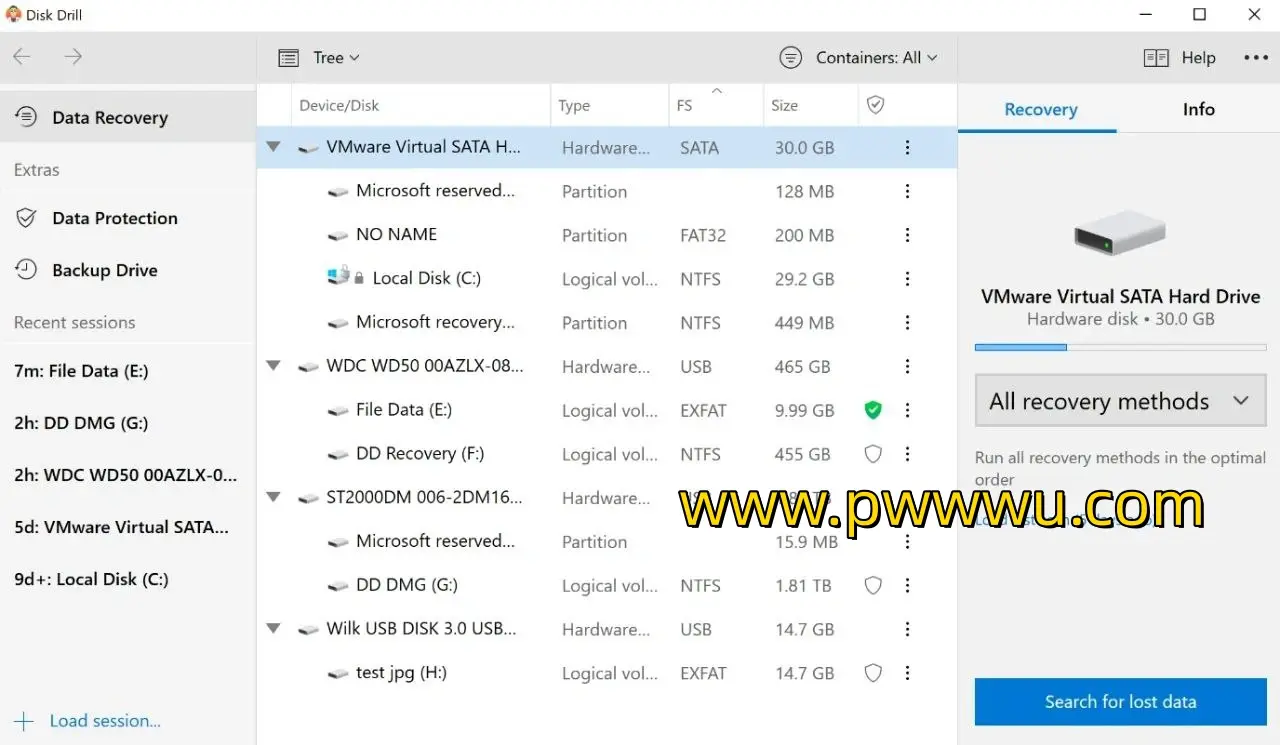 Disk Drill是一款功能强大的数据恢复工具,它兼容多种文件系统,包括NTFS、FAT32、EXT和HFS等。这款软件不仅支持内置硬盘,还能恢复外置存储设备如SD卡和U盘上的数据。Disk Drill提供了快速扫描和深度扫描两种模式,使得用户能够轻松找回误删的数据。