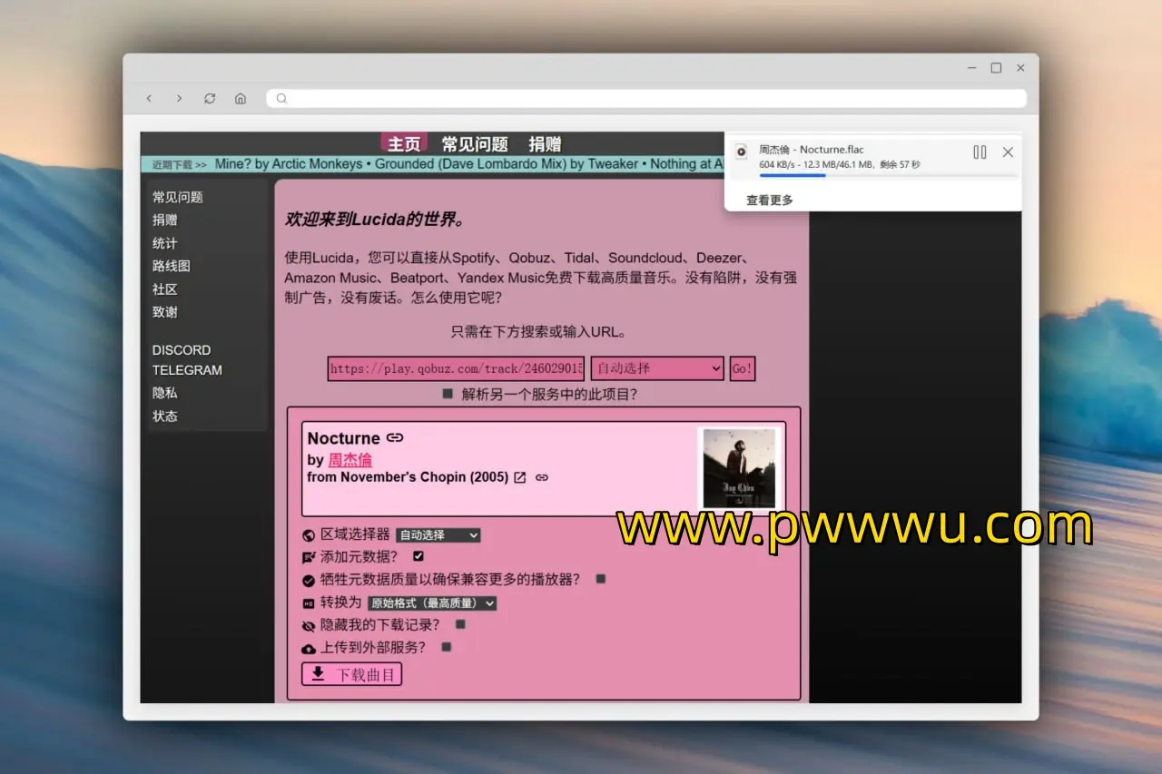 Lucida是一款卓越的音乐在线下载服务,它能够覆盖多个主流音乐平台,包括Spotify、Qobuz、Tidal、SoundCloud、Deezer、Amazon Music、Beatport和Yandex Music等。用户只需提供歌曲名称或链接,Lucida便能快速搜索并提供下载服务。这一平台特别注重音质,支持多种音质选择,用户可以根据自己的需求选择不同码率的音乐,甚至包括高品质的无损Flac格式。