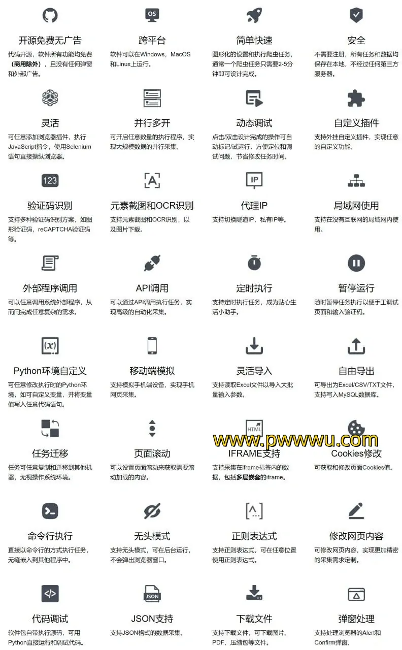EasySpider是一款强大的可视化浏览器自动化工具,旨在简化测试、数据采集和网络爬虫任务。通过直观的图形用户界面,用户无需编写代码即可设计和执行自动化任务。该软件具备多种高级功能,包括并行处理、动态调试、自定义插件开发以及验证码自动识别,极大地提升了工作效率和灵活性。