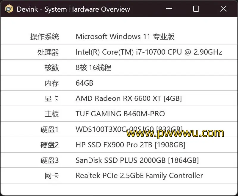 通过机查查 – Devink系统硬件信息查看助手,用户可一键获取详尽的系统硬件信息,包括操作系统、CPU、GPU、主板、内存、硬盘和网卡等。这些信息将以直观的方式呈现,帮助用户全面了解其系统配置。