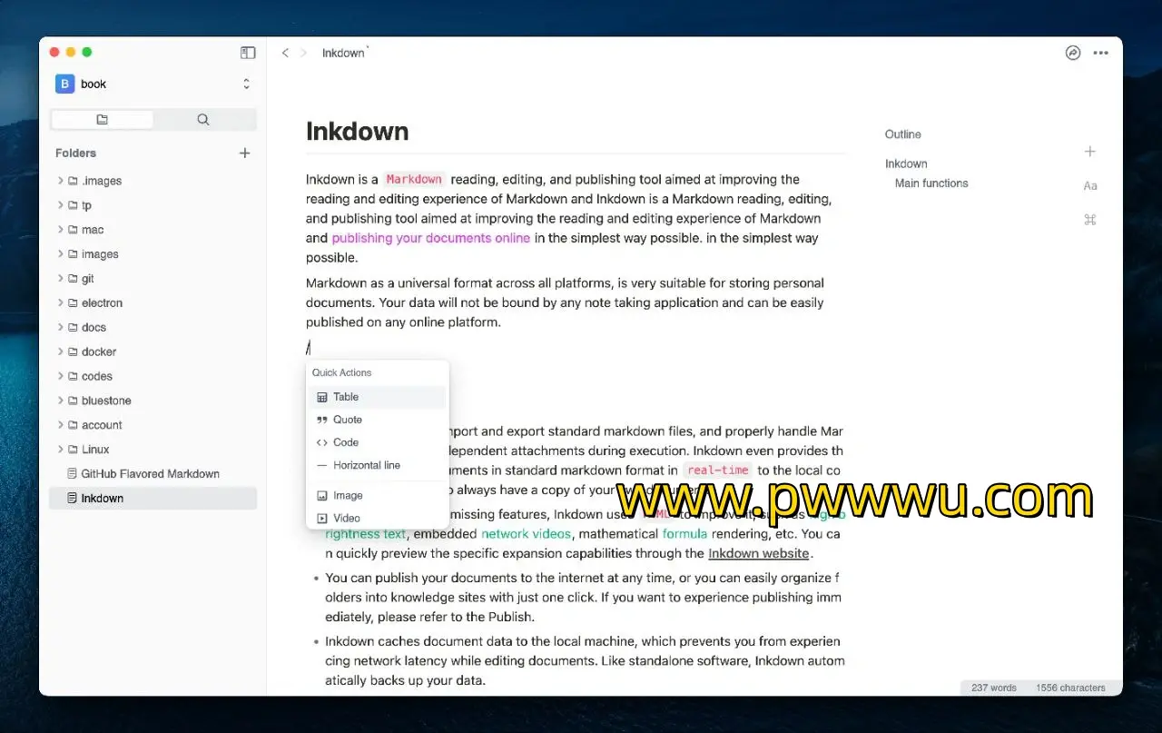 Inkdown的界面设计考虑到了用户的舒适度,无论是在明亮环境下还是在暗光条件下,用户都可以根据自己的偏好选择相应的主题风格,以减少视觉疲劳。这种对用户体验的细致考量,使得Inkdown成为了一个既实用又易于使用的Markdown工具,特别适合那些需要高效编辑和分享Markdown文档的用户。