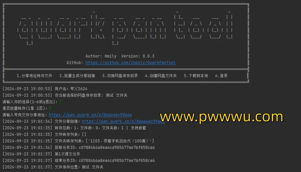 QuarkPanTool 是一款便捷高效的实用工具,它能够帮助用户迅速处理批量文件的转存、分享链接的生成以及夸克网盘文件的批量下载。该工具的稳定性能得益于playwright技术支持的网页登录,用户无需手动获取Cookie即可登录。操作界面简洁,提供了易于理解的命令行界面,便于用户快速转存文件。
