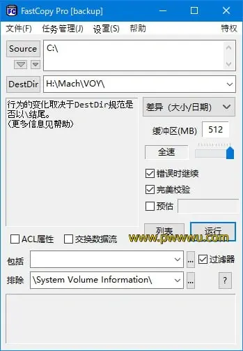 该工具提供了一系列复制选项,包括差异复制、全面覆盖复制、同步和删除等,以满足不同的备份和复制需求。用户还可以根据需要设置过滤规则,包括包含(Include)和排除(Exclude)规则,以精确控制文件的复制过程。FastCopy 允许用户自定义缓冲区和 I/O 单元的大小,以优化性能。