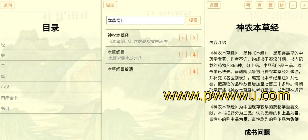 致力于汇集众多中国古典文献的古籍库,是一款专为安卓用户量身打造的应用程序。它以其丰富的藏书资源和全面的功能性,成为古典文学爱好者的理想选择。以下是其主要特点: