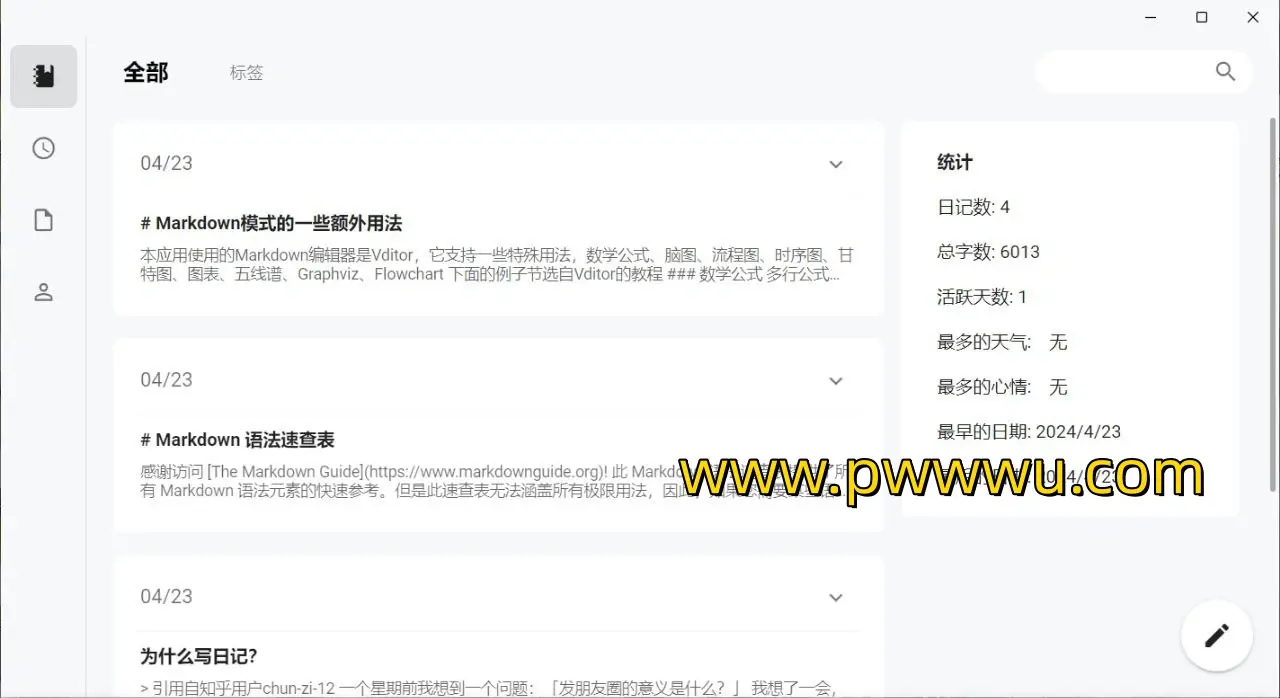 「侠客日记」,一款开源的跨平台本地日记应用,是你的数字江湖秘籍。它不仅记录生活的点滴,更是你传奇故事的见证者。这款应用以其极简的UI设计和Markdown即时渲染功能脱颖而出,支持Android、Windows、macOS以及Web平台,提供多尺寸响应式界面布局,确保在任何设备上都能流畅使用。