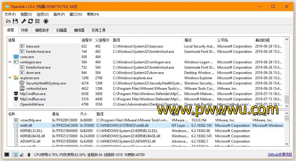 OpenArk致力于为用户提供一个全面、高效的恶意程序分析与清理工具,帮助程序员更好地发现和清除系统中的恶意软件。
