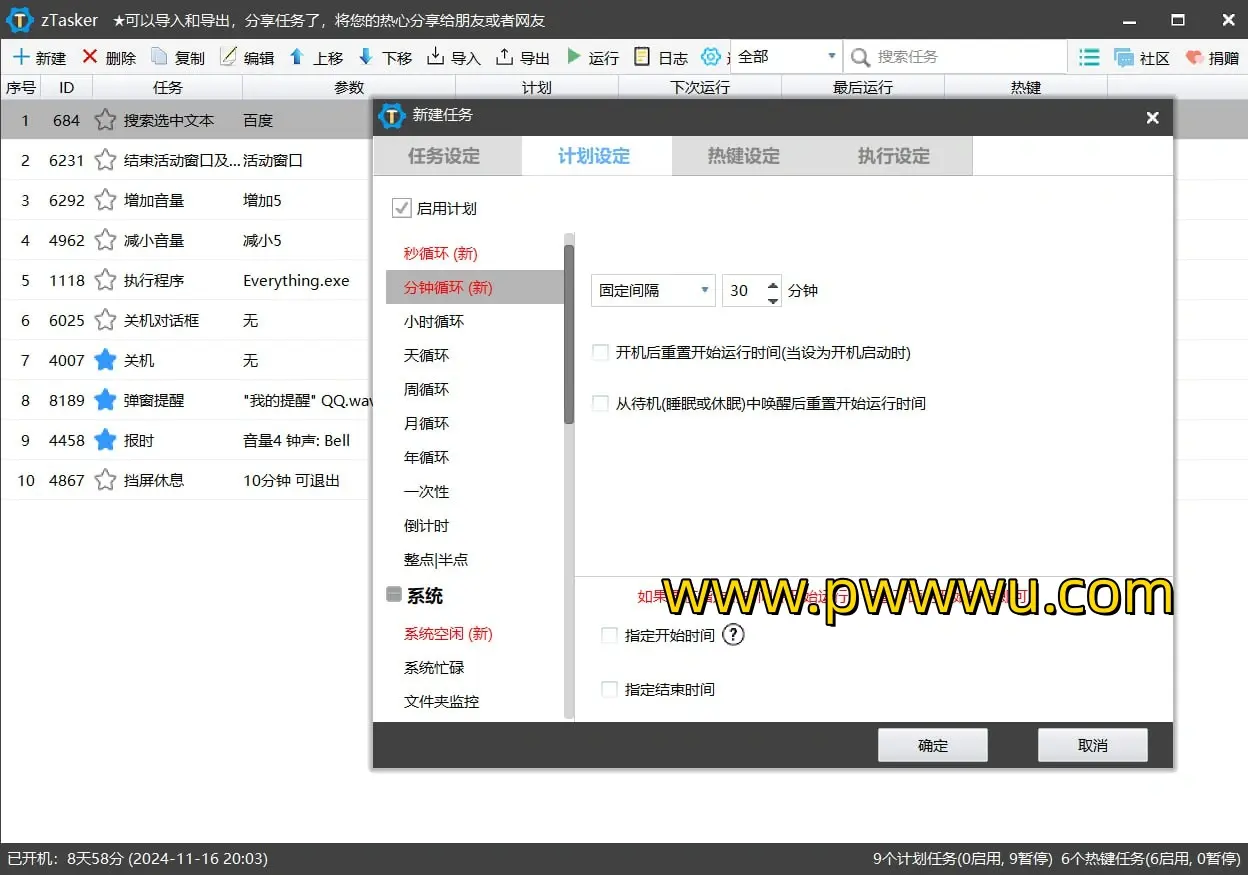 使用zTasker,您的心智负担将降至最低。无需额外记忆或费力组织管理,一个集中的任务列表和强大的管理机制将帮助您随时进行查询、编辑、排序、移动、更改任务类型以及查看日志。zTasker提供了超过30种自动触发条件,涵盖定时触发、键盘鼠标热键、系统硬件监控以及网络监控等多种场景,满足您全方位的自动化需求。