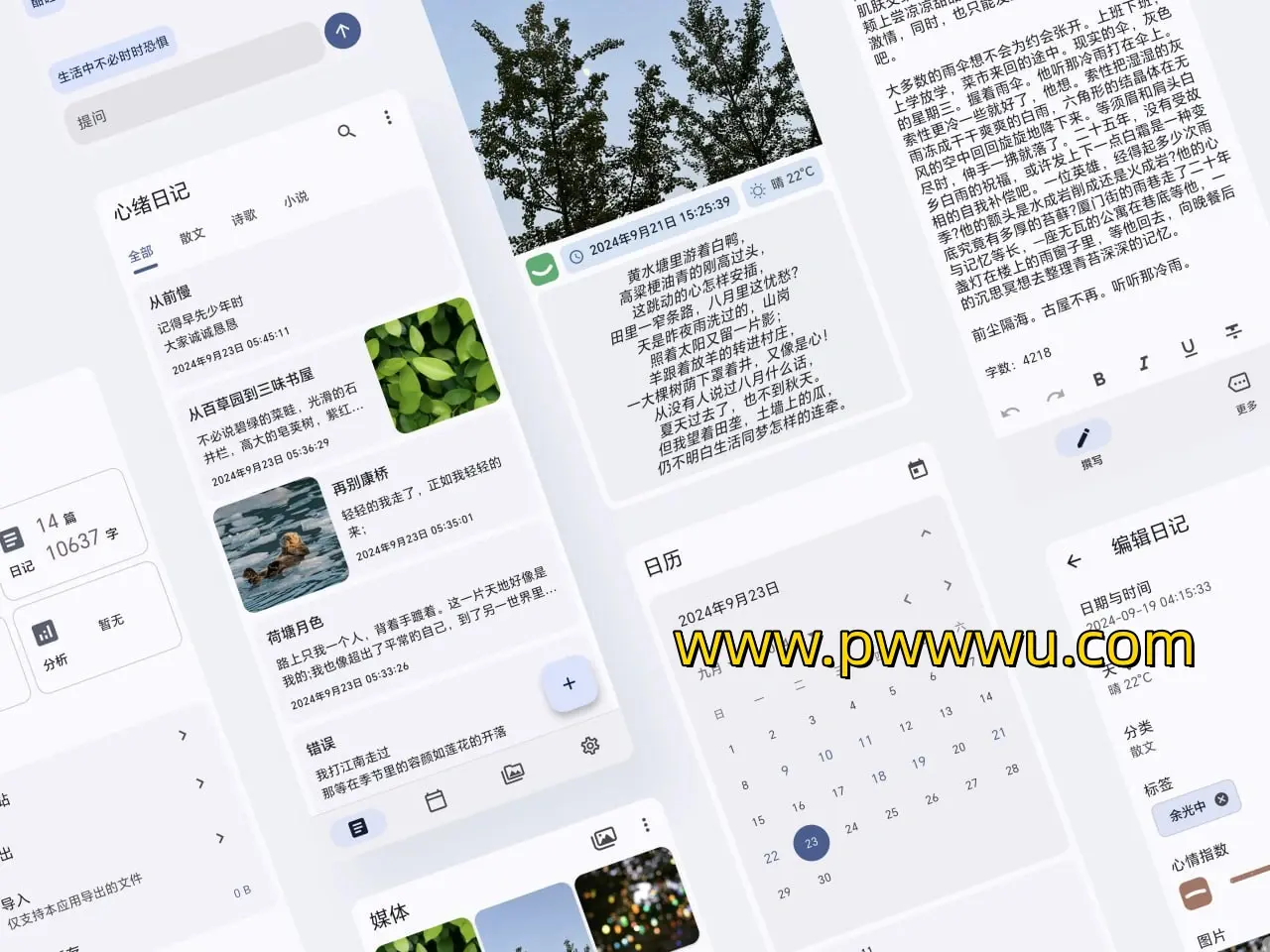 心绪日记是一款无广告、无社交的开源跨平台私密日记应用,它以 Material Design 的风格呈现,界面简洁易用。它支持多平台使用,包括 Android、iOS、Windows、MacOS 和 Linux,让您在不同设备上都能轻松记录生活点滴。